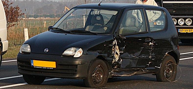 | De Emlichheimse en haar twee jonge passagiers bleven ongedeerd. Zowel de witte Citroën Berlingo bedrijfsauto als de Fiat waren -verzekeringstechnisch gezien- onherstelbaar beschadigd. |
