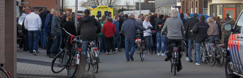 | De Fabrieksweg in Hoogeveen is sedert donderdagmiddag afgezet in verband met het onderzoek naar de gewelddadige dood van een 27-jarige man uit die plaats. De man (HM) werd door een andere man op klaarlichte dag voor een garage neergeschoten, nadat die hem en een tweede aanwezige bedreigde, waarop het slachtoffer op de man met het vuurwapen af liep en die het vuur opende. Het slachtoffer overleed ter plaatse. Inzet van ambulance- en MMT-personeel mocht niet meer baten. Volgens meerdere getuigen was de tweede aanwezige (RB) door de schutter in een hand geraakt. Dit kon door de politie niet worden bevestigd en bleek later niet het geval/ |
