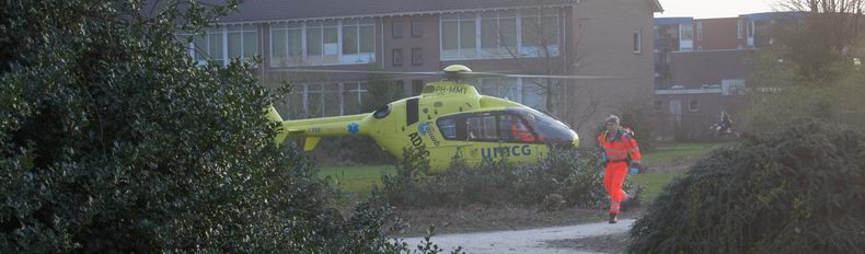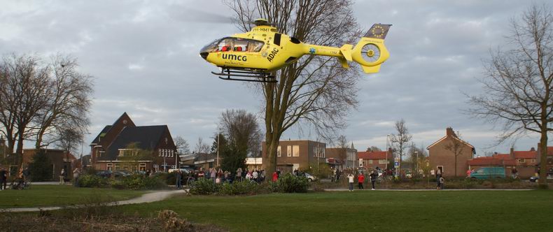 | Kort nadat de traumahli was opgestegen, kreeg de bemaanning opdracht naar Hoogeveen terug te keren en zo dicht mogelijk bij de Jan Dekkerstraat te landen, waar een bloedende man op straat lag. Het bleek te gaan om en fietser, die kennelijk teveel aan Bacchus had geofferd en een val op het wegdek had moeten bekopen met verwondingen aan zijn gezicht. Zowel de bemanning van de ambulance als die van de heli lieten de man zijns weegs gaan, nadat die uitdrukkelijk medische behandeling weigerde. |