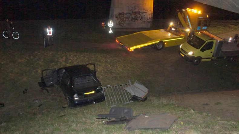 | Loozen: auto crasht door leuning viaduct Westeindigerdijk en stort in de diepte |