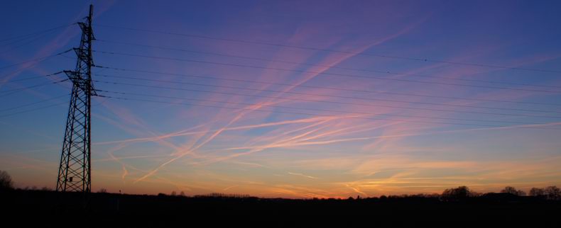 | Woensdagavond even na zeven uur werd de westelijke horizon tijdens de zonsondergang verfraaid door de sporen van uitlaatgassen van de straalmotoren van verkeersvliegtuigen, de zogeheten chemtrails. Onderstaande foto's werden gemaakt aan de Dreef bij Coevorden en de Hoofdweg bij De Krim. |