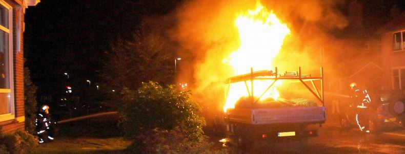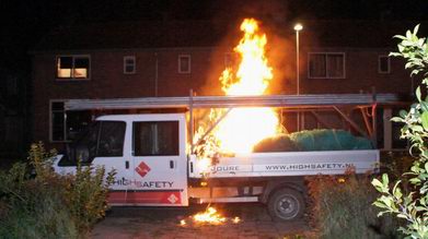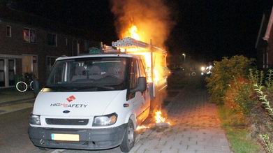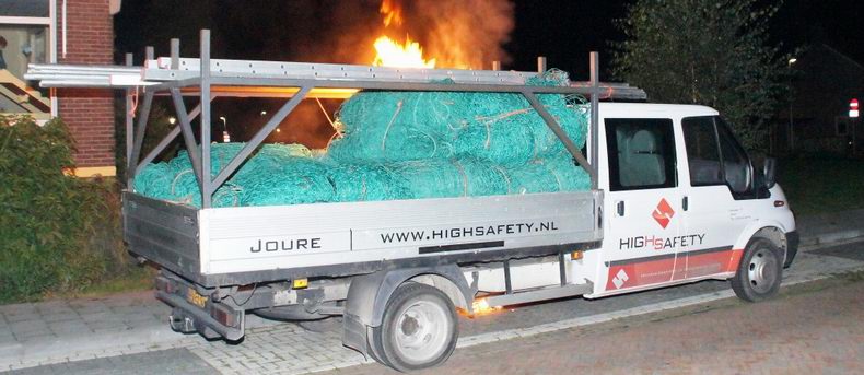 In de Juliana van Stolbergstraat in Hoogeveen is maandagavond een lading veiligheidsnetten op de laadbak van een Ford Transit in brand gevlogen. Brandstichting ligt voor de hand, want de brand was duidelijk in de kunststof netten ontstaan.