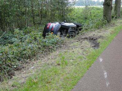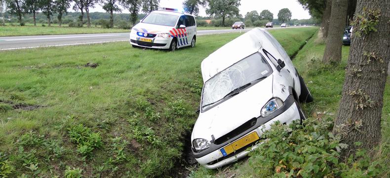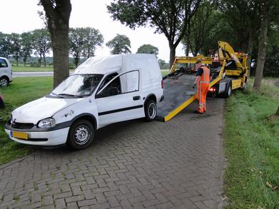 | Een voorbijganger hielp de onfortuinlijke Dedemsvaarter en belde 112. De man bleek slechts aan wondje aan een hand opgelopen te hebben. De zwaar beschadigde Opel Combo is door berger Kraal vanaf de parallelweg opgehaald, zodat het verkeer op de N48 niet gehinderd werd. |