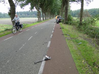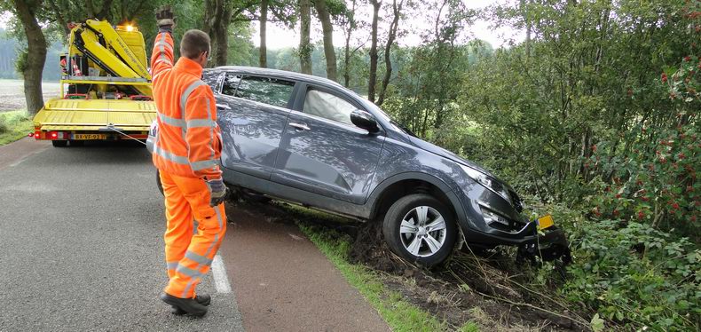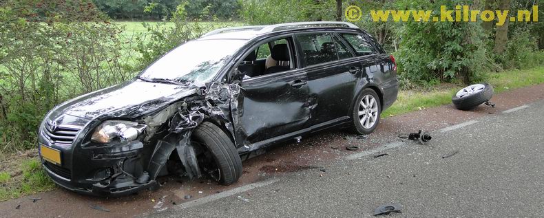 | Dinsdagmiddag heeft zich een zware frontale aanrijding voorgedaan op het Eursinge in de gelijknamige buurtschap in de gemeente De Wolden. Twe personenauto's kwamen op de smalle weg met de linker voorzijde elkaar in botsing , waardoor beide voertuigen stuurloos werden. Een grijze Kia Sportage verloor het linker voorwiel en kwam na de crash op zijn linkerkant in de droge bermsloot tot stilstand. De bestuurder bleef ongedeerd. De inzittenden van de andere auto -een zwarte Toyota Avensis- zijn voor nader onderzoek per ambulance naar een ziekenhuis overgebracht. |