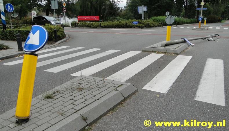 | De chauffeur van een zeer lange vrachtwagencombinatie heeft woensdagmorgen rond 08:40 uur flinke schade aangericht op de kruising Anerdijk - Voorstraat - Hardenbergerweg in Gramsbergen. Getuigen zagen, dat de met pijpen geladen oranje/rode trekker met oplegger op de middengeleider een verkeersbord ramde en een lichtmast plette, toen de truck van de Anerdijk rechtsaf naar Hardenberg afsloeg. Volgens een getuige leek het er even op, dat de combinatie zou stoppen, maar de chauffeur vervolgde zijn weg zonder de komst van de politie af te wachten. |