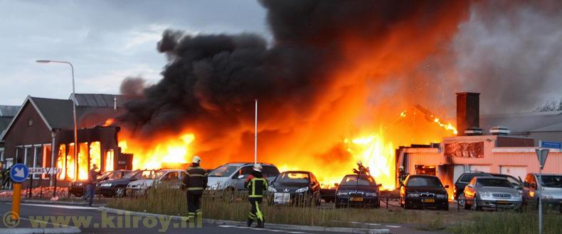 | Donderdagavond rond kwart over zeven brak er brand uit bij autobedrijf aan de Jollesweg. Volgens de eerste berichten zou de brand woeden in een poetsbedrijf, maar al snel bleek, dat autohandel V-Max volledig door een grote vuurzee verteerd werd en tot de grond toe afbrandde. |