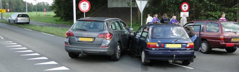 | Plotseling afremmend verkeer door een naar de Luggersweg afslaande auto verraste drie achterop komende weggebruikers, die maandag in de drukke avondsspits over de Jachthuisweg richting Slagharen reden. Het gevolg was een kettingbotsing, waarbij weliswaar vier auto's schade opliepen, maar geen gewonden vielen. Wel was er de nodige verontwaardiging, toen men vanwege de gevaarlijke situatie verzocht om politie, maar de meldkamer nul op het rekest gaf, omdat er geen gewonden waren te betreuren. De afwezigheid van beveiliging leidde echter bijna tot een tweede -frontale- botsing en hevige schrik. De ellende bleef echter beperkt tot blikschade aan vier voertuigen, waaronder een taxibusje en een kleine bedrijfswagen. Laatstgenoemde werd opgehaald en naar een schadeherstelbedrijf in Hardenberg vervoerd door berger De Jonge uit Elim; de overige bestuurders konden zelfstandig hun weg vervolgen. |