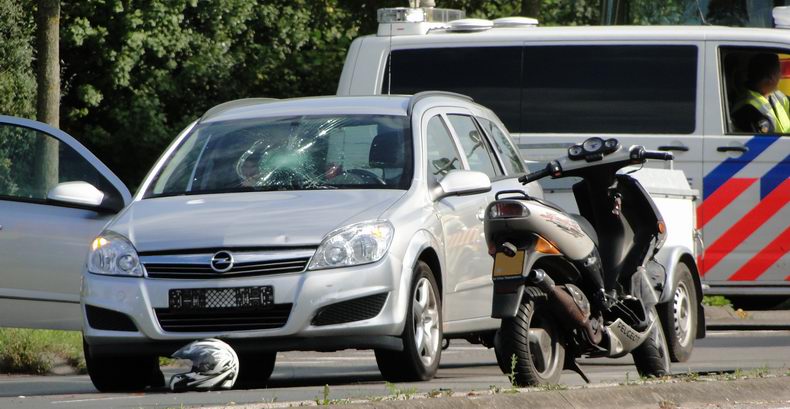 | De automobilist remde krachtig en wist één van de twee scooterrijders te ontwijken, maar raakte wel de tweede. De jonge scooterrijdster sloeg daarop tegen de voorruit van de auto en viel vervolgens op het wegdek. Ze probeerde daarna op te staan, maar de passagiere van de auto overreedde haar te blijven liggen, totdat ambulancepersoneel gearriveerd was. De jonge vrouw is per ambulance naar een ziekenhuis overgebracht. De andere scooterrijder reed na het ongeval door zonder te stoppen, maar zijn identiteit is inmiddels bekend. Experts van de afdeling VOA stelden ter plaatse een onderzoek in. Dientengevolge is de kruising van deze drukke weg in de richting van Zwolle-centrum geruime tijd afgesloten geweest. |