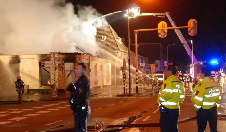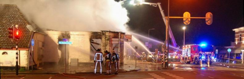 | Het al jaren leegstaande pand op de hoek van de Joncheerelaan met de Grotestraat is vannacht afgebrand. De brand werd gemeld om 04:53 uur en er werd al snel opgeschaald naar "grote brand." Het wit geschilderde, vervallen pand, waar vroeger een cafetaria in gevestigd was en dat de bevolking een doon in het oog was, ging volledig verloren. |