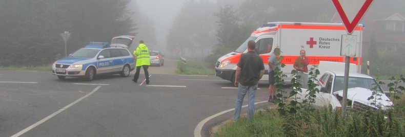 | Donderdagmorgen rond 07:15 uur is een 18-jarige automobiliste uit Emlichhem gewond geraakt bij een verkeersongeval op de kruising van de Hahnenberger Diek met de Kanalstraße. De vrouw wilde van de Hahnenberger Diek de Kanalstraße opdraaien, richting Georgsdorf, maar had -waarschijnlijk door de vrij dichte mist- (zicht slechts 70 meter) niet in de gaten, dat over de Kanalstraße uit de richting van Georgsdorf een vrachtwagencombinatie naderde. Door de daarop volgende aanrijding werd de auto de berm in geslingerd en raakte de jonge vrouw gewond. Ze is per ambulance naar de Euregio-Kliniek in Nordhorn gebracht. Haar auto was total loss. |