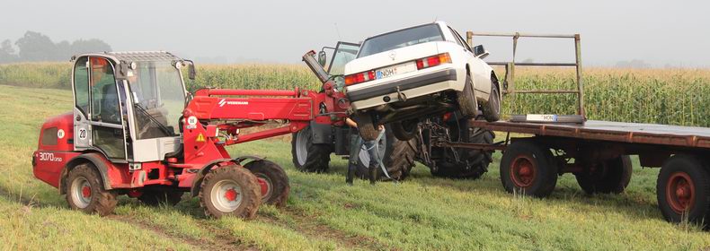 51-jarige vrachtwagenchauffeur uit Dalen (NL) bleef ongedeerd, maar zijn pas drie maanden geleden aangeschafte trekker liep zware schade op. Het voertuig kon pas door berger Kraal worden weggesleept, nadat de snelwegpolitie de tachograaf uitgelezen had. De Mercedes personenauto werd zonder tussenkomst van een bergingsbedrijf weggehaald: het voertuig met een verreiker opgetild en op de aanhangwagen van een tractor gezet... |