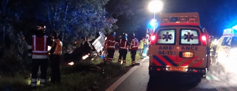 | In de nacht van zaterdag op zondag is de N377 (Zwolseweg) ten westen van Balkbrug ruim twee uur afgesloten geweest na een voorval, waarbij een personenauto en een fietser betrokken waren en dat tegen 04:00 uur plaats vond. De personenauto, waarin vijf jongeren zaten, die na discobezoek van Balkbrug in de richting van Nieuwleusen reden, was op de hoofdrijbaan over de kop gegaan, had een salto gemaakt en een boom geraakt en was vervolgens ondersteboven in de linker berm tot stilstand gekomen. Twee inzittenden zijn per ambulance naar een ziekenhuis vervoerd. Dit incident staat waarschijnlijk in verband met de vondst van een gewonde fietser- ter hoogte van de kruising met de Hoofdweg, en een bloedspoor, enkele honderden meters oostelijker op de N377. De fiets van de man werd bij de kruising naast de parallelweg aangetroffen, alsmede een vers bandenspoor, pal langs het maïsveld. Ook de fietser, die mogelijk aangereden is, toen hij de de hoofdrijbaan over heeft willen steken, is met verwondingen nar een ziekenhuis overgebracht. Het wrak van de totaal vernielde BMW 500-serie stationwagen is door berger Autax opgehaald. De brandweer moest eerst een flinke tak op drie meter hoogte, die ten gevolge van de salto van de BMW ingescheurd was en gevaar opleverde, afzagen. Meer info volgt. |