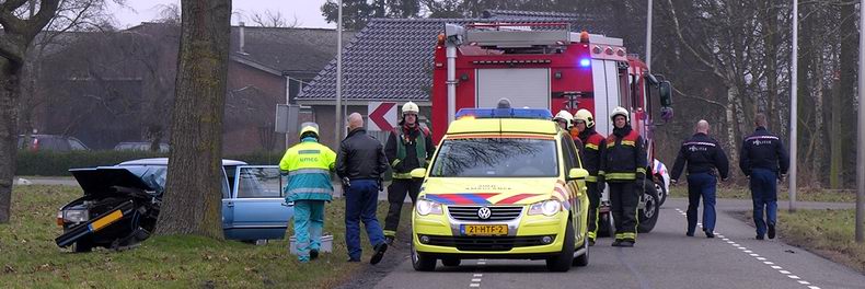 | Op de Ballast -even voor de bebouwde kom van Coevorden- botste dinsdagochtend om half twaalf een personenauto tegen een boom. De bestuurster van de Volvo 760 kwam vanaf de Gebroeders Harteminkweg en reed op de kruising met de Ballast linksaf in de richting van Coevorden. Daar verloor ze de macht over het stuur en botste in de rechter berm tegen een boom. De vrouw werd voorzichtig door medewerkers van de ambulancedienst uit de auto gehaald en voor controle overgebracht naar een ziekenhuis. Een mannelijke passagier kon op eigen kracht uit de auto komen. Hij werd eveneens voor controle overgebracht naar een ziekenhuis. De zwaar beschadigde auto werd door berger de Jonge afgevoerd. |