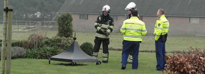 De man sloot de smoorklep en doofde het vuur in de kachel, waarna hij de inhoud uit de kachel schepte en met een kruiwagen naar buiten bracht. De alarmcentrale stuurde de hoogwerker en de watertankwagen uit Hoogeveen op pad, alsmde de blusgroep uit De Krim. Bij controle van het rookkanaal bleek alleen as aanwezig; geen vuur. Nadat de schoorsteen geveegd was, werd de zware kap weer keurig op z'n plaats gezet. |