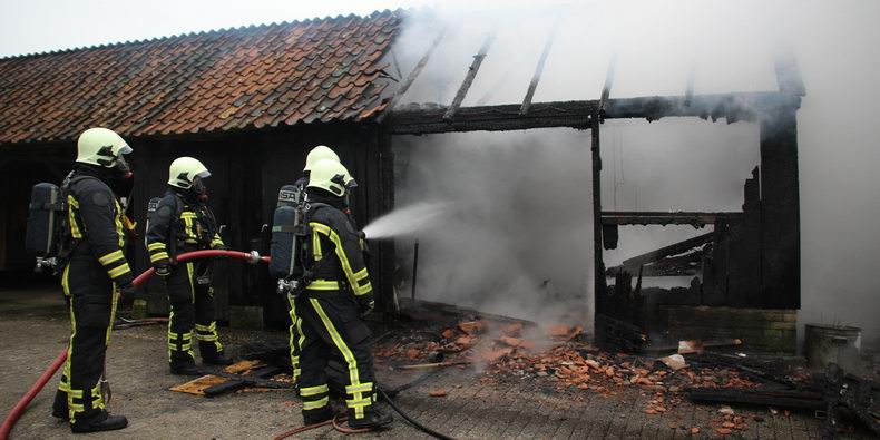 Nadat ze de hulpdiensten gealarmeerd hadden, begonnen de andere bewoners met blussen. Bij aankomst van de brandweer sloegen de vlammen al uit het dak. De brandweer lukte het, de andere schuren, waar vee in stond, te behouden. De schuur moet als verloren worden beschouwd. De adviseur gevaarlijke stoffen (AGS) heeft metingen verricht om te kijken, of er voor de volksgezondheid gevaarlijke stoffen in de rook aanwezig waren. Bij de brand kwam asbest vrij. |