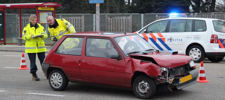 Het ongeval gebeurde, toen de bestuurder van een blauwe Opel Agila afsloeg naar de Emmalaan en een tegemoet komende Renault 5 over het hoofd zag. Een inzittende is vanwege nekklachten door ambulancepersoneel behandeld. Beide auto's liepen zware schade op. Experts van het Team Verkeersongevallenanalyse Twente heeft onderzoek gedaan naar de toedracht van het ongeval. |