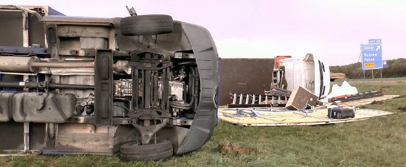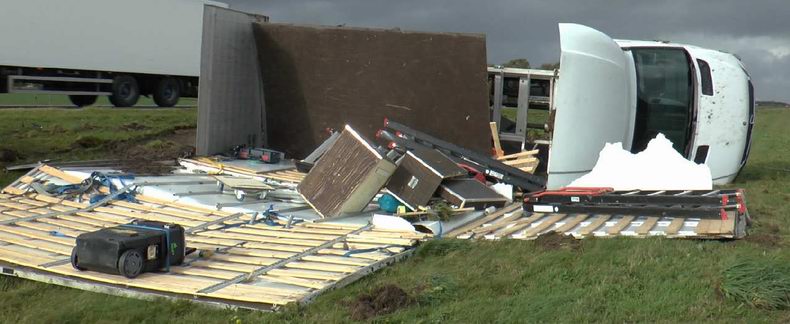 | A28: twee kleine vrachtwagens van de snelweg geblazen |