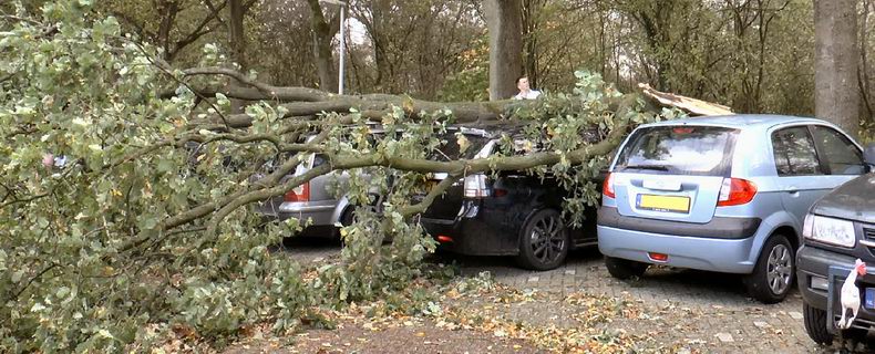 | Hoogeveen: boom over geparkeerde auto's |