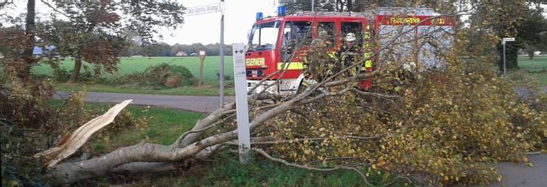 | De storm hield uiteraard geen halt voor de landsgrenzen; sterker nog: de Ortsfeuerwehr Emlichheim had, net als de buurkorpsen van Hoogstede en Ringe-Neugnadenfeld, de handen meer dan vol aan het opruimen van omgevallen bomen en afgerukte takken. In en direct rond Emlichheim vielen zeker zeventien bomen ten prooi aan de zeer zware herfststorm, die plaatselijk windstoten kende tot wel 120 km/uur. Gelukkig vielen er ook aan deze gemeente aan de andere kant van de grens geen doden of gewonden. |