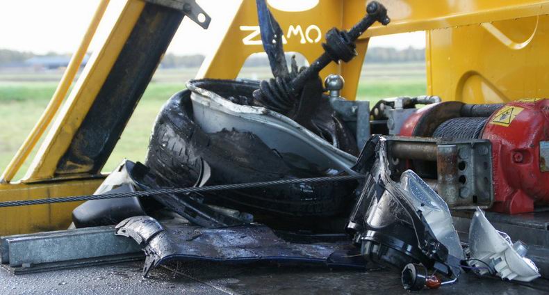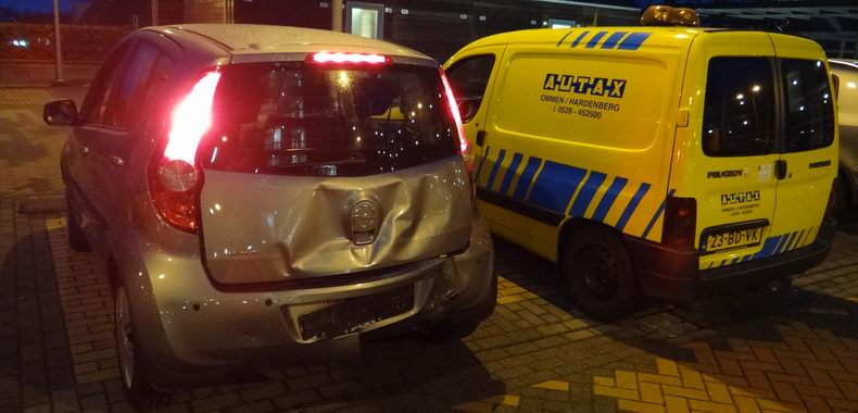 | Berger Autax kreeg zaterdagmiddag opdracht, drie personenauto's uit het centrum van Hardenberg op te halen. Het scheen een routineklus te worden, maar er lagen nogal wat doornen op het pad van bergers Klaas en Bé. Zo bleken de drie auto's niet op de weg te staan, maar op het parkeerdek van de parkeergarage aan het Van Wevelinckhovenplein. En de maximum toegangshoogte tot het parkeerdek is slechts 2,25 meter, dus de bergingsauto kon er niet in... Gelukkig bleken twee van de drie auto's, ondanks de flinke schade, nog te kunnen rijden, maar van de derde, die ogenschijnlijk weinig schade had opgelopen, was de voorwielophanging zo beschadigd, dat deze Peugeot 5008 nog maar met pijn en moeite rechtuit kon rijden. Toch lukte het, de auto voorzichtig, zonder bijkomende schade uit de parkeergarage te rijden en op de lepel van de bergingstruck vast te maken. Alleen bleek al snel, dat deze auto er niet van gediend was, gesleept te worden, want al na een meter of honderd activeerde het voertuig uit zichzelf z'n parkeerrem. Gelukkig kon ook dit probleem vlot opgelost worden door de motor tijdens het slepen stationair te laten lopen en kwamen de auto's veilig bij schadeherstelbedrijven aan. Het ongeval was trouwens ontstaan, toen de (oudere) bestuurder van een Opel Agila achteruit reed en zijn auto met de achterzijde tegen de rechter flank van een geparkeerde Hyundai I 10 botste. De Hyundai werd op zijn beurt tegen een ernaast geparkeerde Peugeot 5008 MPV gedrukt, waardoor de voorwielophanging van de 5008 het begaf. Gelukkig bleef het bij blikschade. |