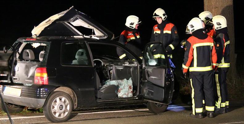 | Op de Asserstraat in Rolde schoot zondag tegen de avond een Audi 2.0 TDI van de weg, plette een lantaarnpaal en kwam op z'n kant tegen een boom tot stilstand. De bestuurder ging er ijlings te voet vandoor in de richting van Rolde. Volgens de politie gaat het om een slanke man in donkere kleding. De auto was total loss. De brandweer van Rolde koppelde de accu af en regelde het verkeer. |