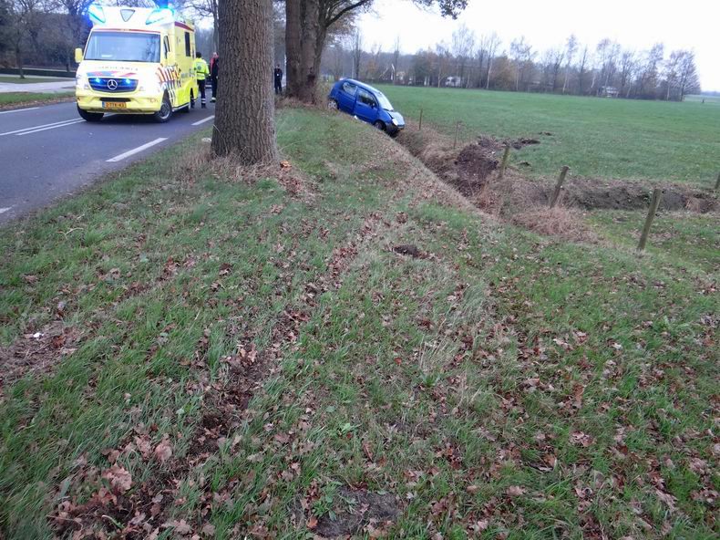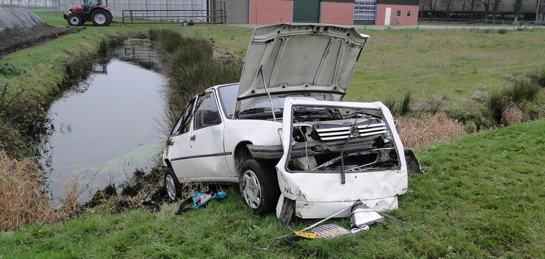 | Eursinge: auto slipt droge sloot in; bestuurder gewond |