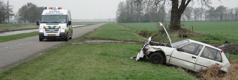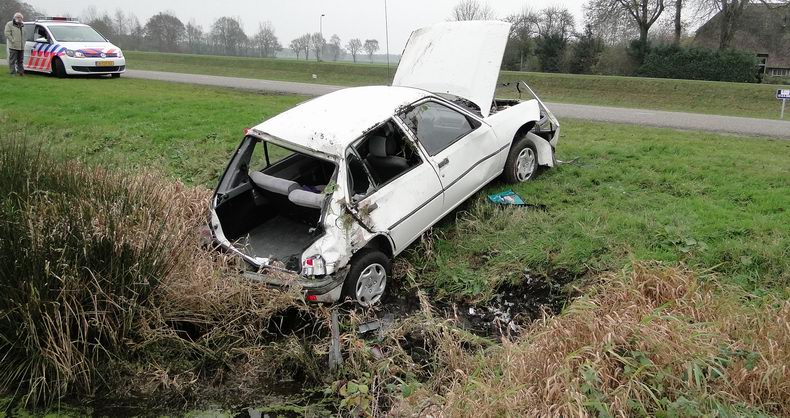 | Maandagmiddag rond 14:00 uur werd alarm geslagen, omdat er aan het Stieltjeskanaal tussen Coevorden en Stieltjeskanaal een auto te water zou zijn geraakt. De auto -een Peugeot 205- was aan de "stille kant" van het kanaal van de weg geraakt en na een flinke buiteling op zijn wielen tot stilstand gekomen; niet in, maar pal vóór een vrij brede sloot bij een boerderij. De bestuurster waarschuwde al zwaaiend een passant, die 112 belde. De vrouw had last van pijn in een heup. Ze is per ambulance naar een ziekenhuis gebracht. Haar kat is door dierenambulancepersoneel uit Emmen opgehaald, nadat het versufte dier een tijdje -in een brandweerdeken gewikkeld- op de hoedenplank van een politieauto bij had kunnen komen. De bijna 27 jaar oude Peugeot was total loss. |