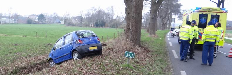 | Alarm voor de brandweer van Westerbork, dinsdagmiddag tegen kwart voor drie: verkeersongeval op de Hoogeveenseweg (N374) bij perceel 8. Even ten noorden van de aansluiting met de Twee Provinciënweg (N381) bleek een Daewoo Matiz met de neus in een droge sloot te staan. De bestuurder -een 44-jarige inwoner van Westerbork- bleek gewond. Hij is per ambulance voor verdere behandeling naar een ziekenhuis vervoerd. Uit de sporen viel op te maken, dat de auto in de richting van de N381 had gereden, maar in een flauwe bocht de berm in was gereden. De Daewoo miste daar een eik, maar botste wel hard tegen de slootwal en kwam enkele meters verderop tot stilstand. De bestuurder werd er op onplezierige wijze aan herinnerd, waar de veiligheidsgordels voor bedoeld zijn; zo bleek uit de forse "dakkapel" in de voorruit en de schade aan het stuur.... De politie vermoedde, dat de man onder invloed van alcohol verkeerde en heeft in het ziekenhuis in Hoogeveen een bloedproef laten nemen. |