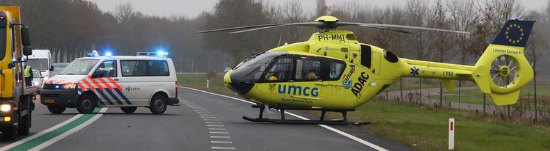 | Woensdagmiddag tegen half drie zijn -voor zover nu bekend- drie inzittenden gewond geraakt bij een frontale botsing op de provinciale weg N34 ter hoogte van de op- en afrit Gieten. De aanrijding werd vermoedelijk veroorzaakt door een 56-jarige automobilist uit Groningen die, door nog onduidelijke oorzaak plotseling op de verkeerde rijbaan kwam en daar frontaal op een tegenligger botste. Het Mobiel Medisch Team vloog per heli naar de ongevalslocatie, maar vertrok na een kwartiertje. De gewonden zijn met ambulances weggebracht. Team VOA verzamelde informatie ten behoeve van het proces verbaal. De inzittenden van de aangereden auto -een 72-jarige vrouw en een 73-jarige man uit Midlaren- raakten gewond en werden naar het Wilhelminaziekenhuis in Assen vervoerd. De Groninger werd per ambulance naar het UMCG in zijn woonplaats gebracht. De N34 was geruime tijd afgesloten, hetgeen tot flinke files leidde. |