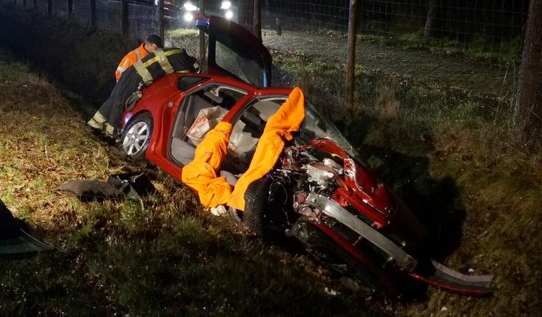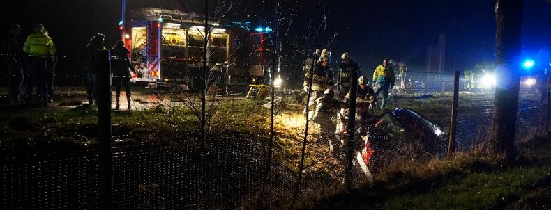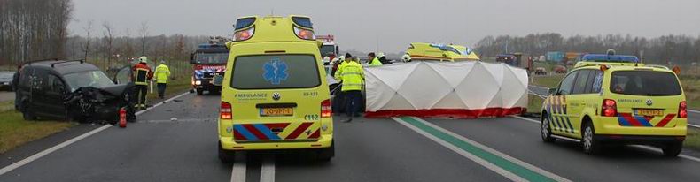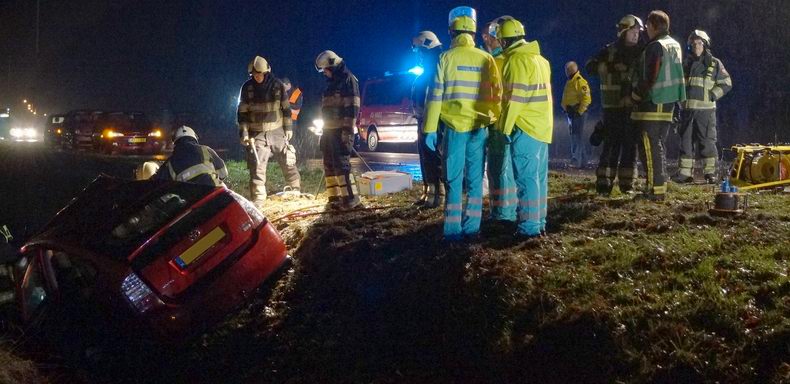 | De inzittenden van een Volkswagen Polo, die zondagmiddag even na vijven in de stromende regen over de N48 richting Hoogeveen reden, wachtte een vervelende verrassing. Ze waren net de afrit Zuidwolde voorbij, toen opeens een rode Toyota Prius, die richting Balkbrug reed, uit de koers raakte en de Polo bijna vol frontaal raakte. De Polo tolde in het rond en kwam achterstevoren -half in de berm- tot stilstand. De Prius kwam half gekanteld in een droge bermsloot te staan. De bestuurder - een 77-jarige man uit Zuidwolde- is door de Zuidwoldiger brandweer met hydraulisch redgereedschap vakkundig uit het wrak van de auto bevrijd. De man is per ambulance naar een ziekenhuis vervoerd. De drie inzittenden van de andere personenauto raakten door de aanrijding ook gewond en werden ook naar een ziekenhuis overgebracht. De bestuurder wist zelf uit de auto te komen, maar de twee andere inzittenden werden door de brandweer uit de auto gehaald. Een 20-jarige man die op de achterbank zat, overleed later in het ziekenhuis; de 20-jarige bestuurder en de 19-jarige passagier die naast hem zat, raakten zwaar gewond. Beide -onherstelbaar beschadigde- auto's zijn na het VOA-onderzoek door berger De Jonge opgehaald. |