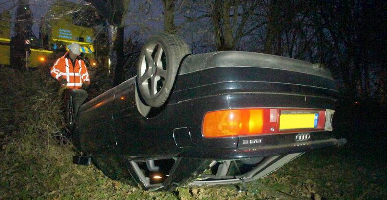 | A28 / De Wijk: auto op z’n kant |
