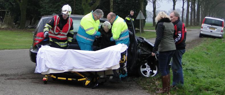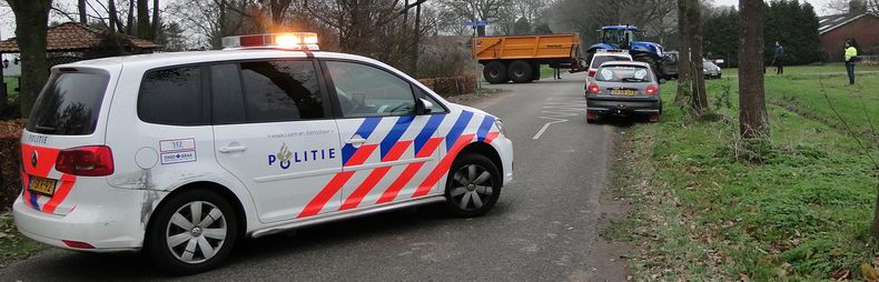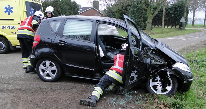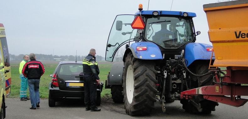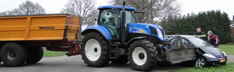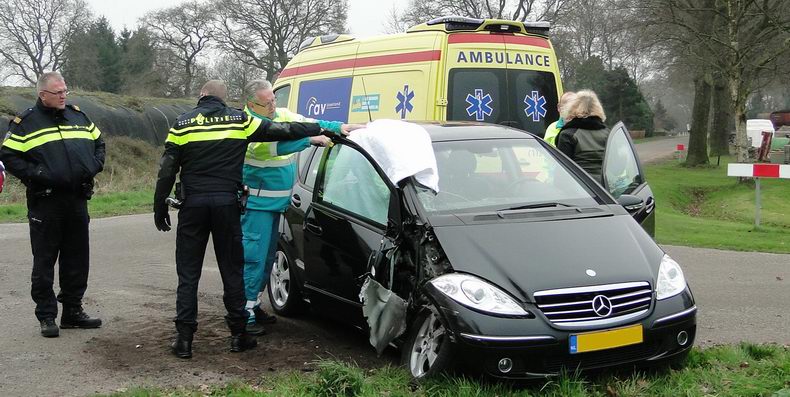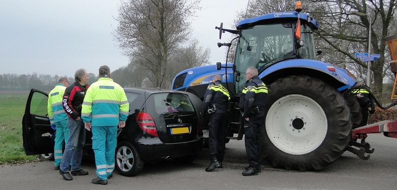 | Vrijdagmorgen is een Mercedes A150 zwaar beschadigd geraakt ten gevolge van een aanrijding op de kruising De Lutteresweg - Molenweg - Korteslagenweg in Lutten. De bestuurster -een inwoonster van Lutten- reed over de De Lutteresweg de kruising op, maar haar zicht naar rechts werd belemmerd door een berg kuilvoer, waardoor ze een tractor niet opmerkte, die van rechts (Molenweg) kwam. Het dozerblad van de tractor raakte de Mercedes ter hoogte van het rechter voorwiel en blokkeerde daardoor het rechter voorportier. Op de passagiersstoel zat een bejaarde dame. Voor alle zekerheid werd de blusgroep van De Krim gealarmeerd, alsmede het hulpverleningsvoertuig uit Hardenberg, maar de tractor kon voorzichtig weggereden worden, waarna het portier geopend kon worden. Ondersteund door hulpverleners kon de vrouw uitstappen en plaats nemen op de brancard. Ze is voor onderzoek naar een ziekenhuis vervoerd. Haar dochter, die de auto bestuurde, kwam met de schrik vrij. De A150 was total loss; de tractor had geen zichtbare schade. |
