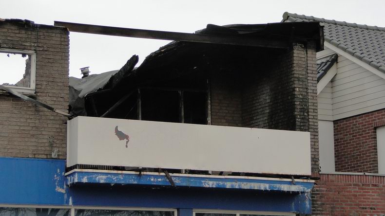 | Coevorden: het uitgebrande pand aan de Stationsstraat - de dag na de brand |