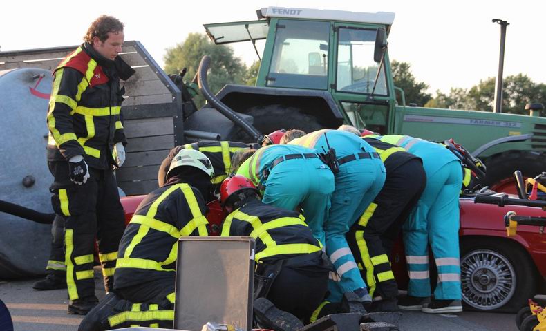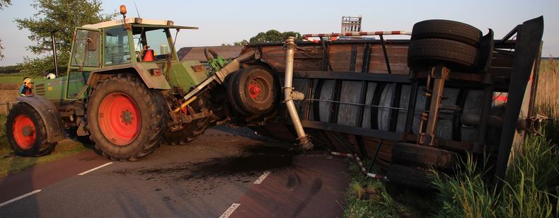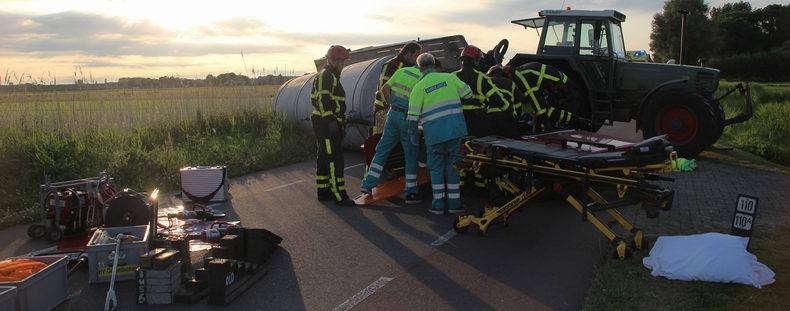 | Maandagavond rond half negen draaide een automobilist vanaf een zandweg de Groote Woldweg op, maar zag daarbij een op die weg naderende tractor met giertankaanhanger over het hoofd. De bestuurder van de tractor remde uit alle macht, waardoor de giertank kantelde en vlak voor de auto terecht kwam. De brandweerkorpsen Oldebroek en Elburg hebben ambulancepersoneel geassisteerd bij het uit het voertuig halen van de gewonde, waarna die met spoed is overgebracht naar een ziekenhuis. |