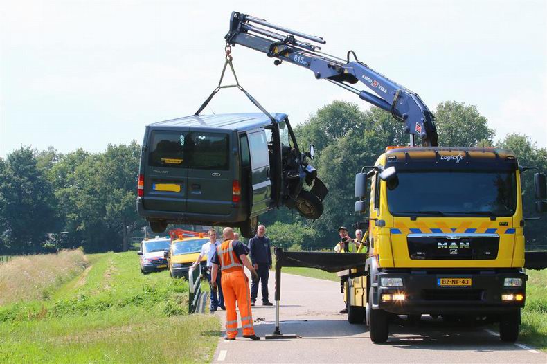 | Diverse hulpverleningseenheden, waaronder een brandweerteam uit Balkbrug en een waterongevallenploeg uit Zwolle, ambulances en een heli-MMT kwamen maandagmiddag in actie, nadat rond 12:30 uur gemeld was, dat er aan de Balkerweg in Vinkenbuurt een auto te water zou zijn geraakt. Men vond in de beruchte slinger in de buurtschap Ommerschans een zwaar beschadigde Fiat Punto. De auto reed, toen het ongeval ontstond, in de richting van Balkbrug, maar raakte de betonnen afscheiding tussen het fietspad en de rijbaan. Daardoor verloor de bestuurder de macht over het stuur en slipte de auto schuin de rijbaan over en de linker berm in, tussen enkele bomen door. De auto dook vervolgens een haaks op de weg gelegen moddersloot in en kwam ondersteboven in de sloot tot stilstand. De auto is door de brandweer uit de sloot getrokken. De bestuurder -een 67-jarige inwoner van Nieuwleusen- is geruime tijd gereanimeerd, alvorens hij met spoed naar een ziekenhuis is overgebracht. Nadat een expert van Team VOA IJsselland de nodige informatie had verzameld, haalde berger Autax het wrak op. |