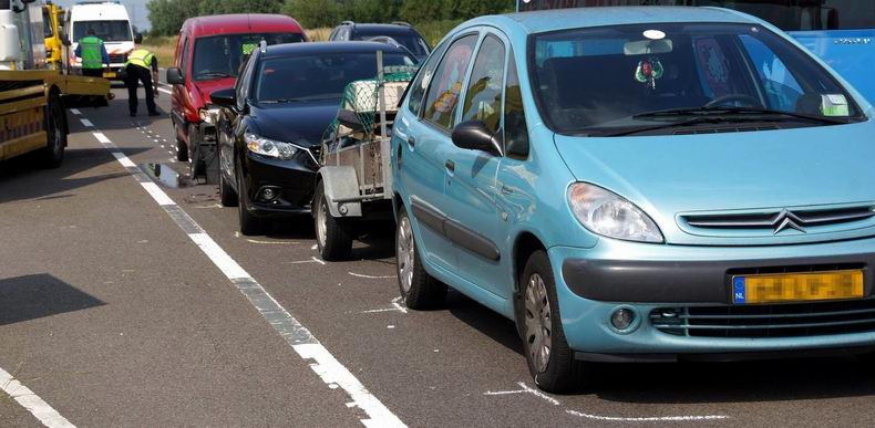 | Bij een flinke kop-staart aanrijding op de Hasselterweg bij Zwolle zijn donderdagmiddag rond half vier twee gewonden gevallen. Een bestuurder van een Citroën Berlingo bestelauto merkte de stilstaande file voor hem voor de rotonde nabij de wijk Stadshagente laat op. Ondanks een ferme rempoging botste de bestelauto op een Mazda, die achteraan de file stond. Door de klap schoot de Mazda door op zijn voorganger, een Citroen Xsara Picasso met aanhanger. De gewonden zijn met een ambulance overgebracht naar het ziekenhuis. Ondertussen brachten medewerkers van de verkeersongevallendienst het incident nauwkeurig in kaart. Voor dit onderzoek en voor de berging, die door bergingsbedrijf Leerentveld werd uitgevoerd, moest de gehele weg een tijdje worden afgesloten. Hierdoor ontstond al snel een behoorlijk lange file. Rond kwart voor vijf werd de weg vrijgegeven en loste de file vlot op. |