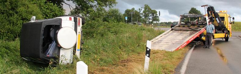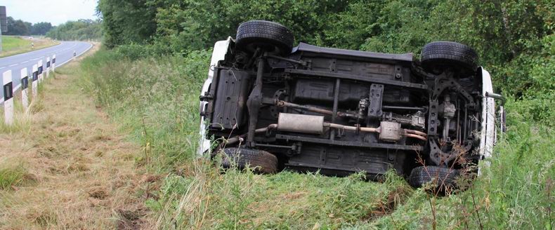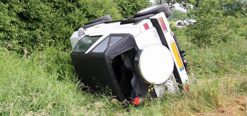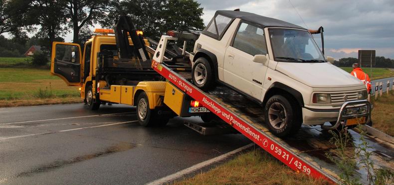 | Zondagavond rond half negen reed een 20-jarige vrouw uit Groningen over de zuidelijke rondweg bij Neuenhaus, maar toen ze via de rotonde en de Nord West Ring (L44) haar weg in de richting Emlichheim wilde vervolgen, kwam de Suzuki Vitara JLX van de jonge vrouw naast de rijbaan, ging over de kop en kwam ondersteboven in struikgewas tot stilstand. De vrouw bleek -op de schrik na- geen nadelige gevolgen aan het voorval te hebben overgehouden. Ze werd door haar moeder opgehaald. Bergingsondernemer Olthuis uit Nordhorn haalde de licht beschadigde, 21 jaar oude Suzuki op |