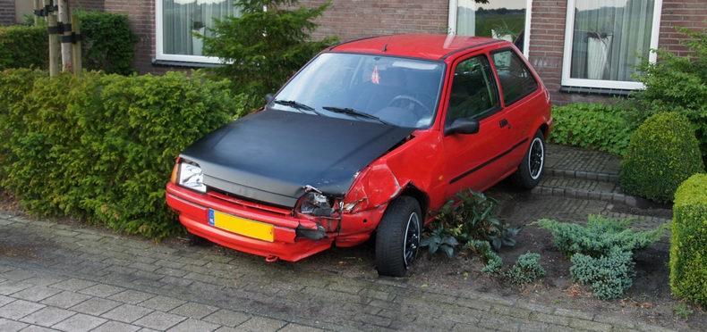 | Bezoekers van een café aan de Europaweg te Schoonebeek waren op de rijbaan een balletje aan het trappen om de Nederlandse overwinning te vieren. Tijdens dit voetbalpartijtje kwam de strandbal tegen een toevallig passerende auto en veroorzaakte hierbij een grote ster in de voorruit. De uit Nieuw Amsterdam afkomstige bestuurder schrok hiervan, stopte en reed achteruit om de “schutter” aan te spreken. Terwijl de bestuurder enkele meters achteruit reed richting Schoonebeek, kwam er uit de richting Nieuw Schoonebeek een vrachtwagen met melkoplegger. De achteruitrijdende personenauto kwam gedeeltelijk op de weghelft van de naderende vrachtwagen en een aanrijding was het gevolg. De personenauto kwam achterstevoren in een tuintje terecht, waar de bestuurder en zijn passagiere ongedeerd, maar behoorlijk geschrokken, konden uitstappen. De vrachtwagenchauffeur kon na de administratieve afhandeling door de politie zijn weg vervolgen; de personenauto is door een bergingsbedrijf afgevoerd. De persoon, die de bal op de voorruit schoot, heeft de komst van de politie niet afgewacht, maar zal ongetwijfeld nog een bezoekje van de sterke arm der wet kunnen verwachten. |