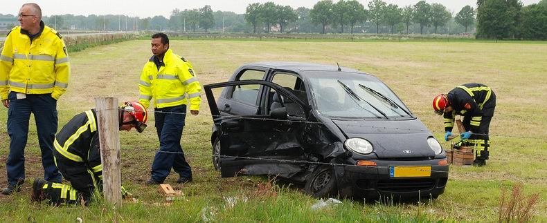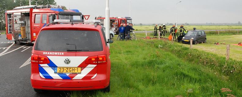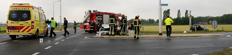 | Donderdagmorgen tegen achten zijn er twee vrouwen gewond geraakt bij een fikse aanrijding op de kruising van de Rusluieweg met de Boslandweg in Vriezenveen. De brandweer werd opgeroepen om de ambulancemedewerkers te assisteren bij het in veiligheid brengen van één gewonde. Het ongeval werd veroorzaakt door een 32-jarige automobiliste uit Vriezenveen, die op de Boslandweg reed en de (voorrangsweg) Rusluieweg wilde oversteken. Zij zag daarbij de van rechts naderende auto, bestuurd door een 41-jarige vrouw uit Uelsen (D), over het hoofd. De Daewoo Matiz van de 32-jarige komt tot stilstand in het naastgelegen weiland. Zij wordt door de brandweer uit haar auto bevrijd en per ambulance met nekletsel overgebracht naar een ziekenhuis. De 41-jarige vrouw is ter plaatse onderzocht en is voor behandeling op eigen gelegenheid naar een ziekenhuis gegaan. Beide auto’s waren onherstelbaar beschadigd. De VOA heeft een onderzoek ingesteld naar de toedracht van het ongeval. |