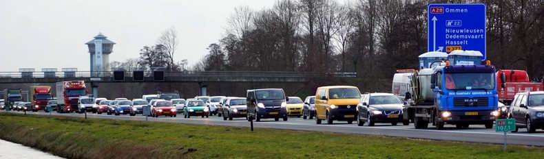| Op de A28 tussen De Lichtmis en Staphorst zijn maandagmiddag twee rijstroken afgesloten in verband met een ongeval, waarbij zes voertuigen betrokken waren. Het ongeval ontstond rond half vijf. Twee ambulances werden ingezet, maar geen van de betrokken automobilisten had ziekenhuisbehandeling nodig. Bergingsbedrijf Hooikammer heeft met spoed de auto’s van de rijstroken gehaald. Ondanks deze snelle inzet ontstond er al snel een file van ongeveer tien kilometer. Alle voertuigen zijn overgebracht naar het depot van de berger. Daar konden de gedupeerden op hun gemak de schadeformulieren invullen en persoonsgegevens uitwisselen. Binnen een half uur was er van het ongeval -op de file na- niets meer te merken. |