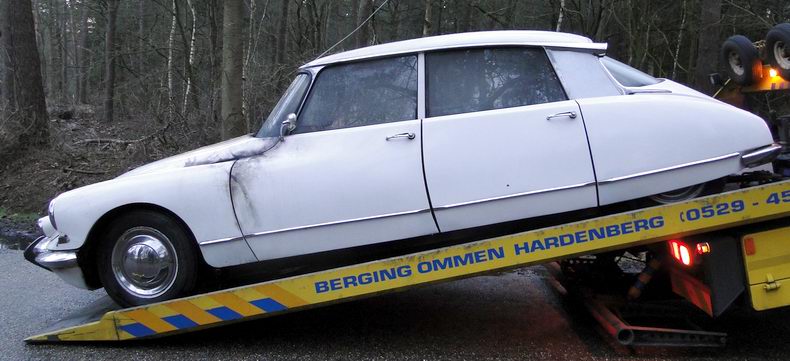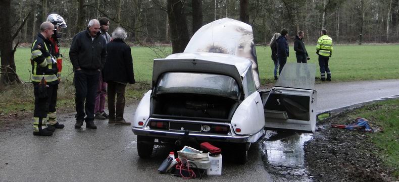 | Na ruim 51 jaar trouwe dienst werd dinsdagmiddag een ritje op de Emslandweg een in 1988 geïmporteerde oldtimer Citroën ID 19P fataal. De eigenaar was nog maar net van huis vertrokken, toen de motor er de brui aan gaf en er in het motorcompartiment brand uitbrak. De bestuurder en zijn passagier wisten met een deken te voorkomen, dat de vlammen oversloegen naar de cabine. De Ommer brandweer bluste de brand, maar het motorcompartiment brandde volledig uit en het interieur zat onder de roet. De (WA-verzekerde) auto werd opgehaald door berger Autax. |
