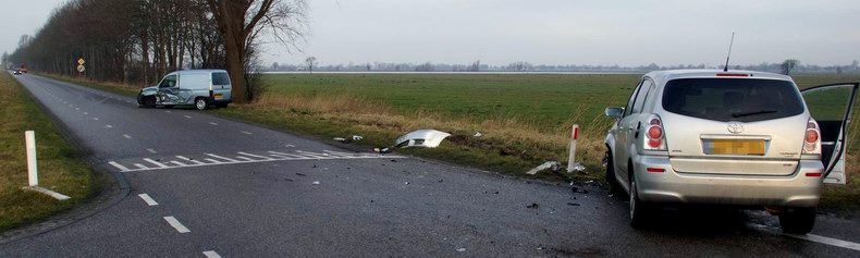 | Op de kruising van de Conradsweg met de Klaas Kloosterweg West in Staphorst heeft woensdagmorgen een flinke aanrijding plaatsgevonden. Een automobiliste wilde vanaf de Klaas Kloosterweg de kruising op rijden, maar zag een van rechts -uit de richting van Staphorst- naderende bestelauto over het hoofd. De auto van de vrouw boorde zich in de flank van het andere voertuig. De aangereden auto gleed een flink eind door de berm en kwam tientallen meters verderop tot stilstand. Vanwege de klap en de uitgeklapte airbags riep de politie een ambulanceteam op om beide automobilisten te controleren. Een kind, dat bij de vrouw in de auto zat, maar ondertussen al thuis was gebracht, werd later ook gecontroleerd. Uit deze controle bleek dat er niemand letsel had opgelopen en geen verdere medische hulp nodig had. Bergingsbedrijf Hooikammer heeft beide voertuigen afgevoerd. De kruising was korte tijd afgesloten voor het verkeer. |