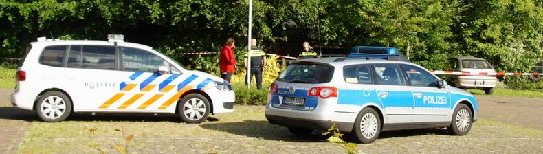 De bemanning van een Nederlandse surveillancewagen, die in verband met de overval op het tankstation bij Coevorden in de richting van Emlichheim reed, stuitte bij toeval op een verdacht voertuig, dat geparkeerd stond op de parkeerplaats van S.V. Grenzland-Laarwald bij Laar-Vowald.