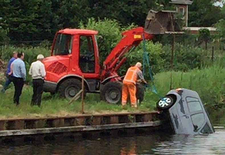 | Gramsbergen: auto politiewoordvoerder te water |