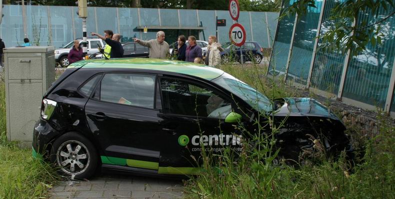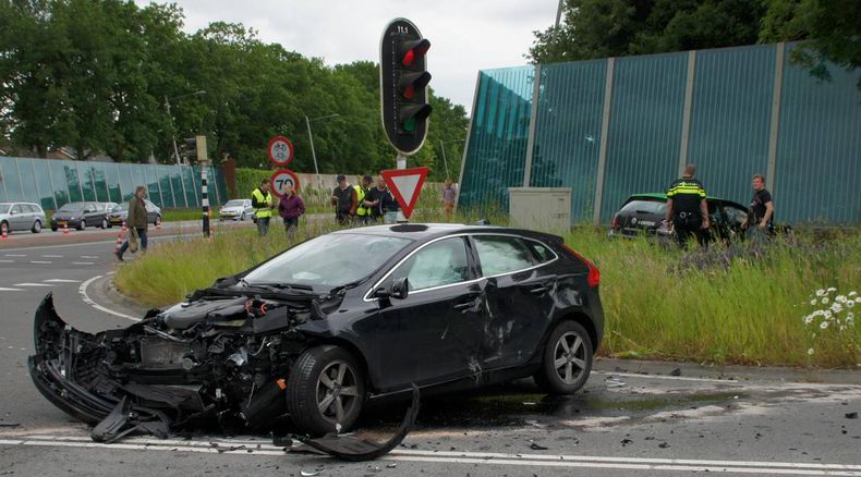 | Een Volvo V40 botste zaterdagmiddag vol in de flank van een VW Polo. Het ongeval, dat een flinke ravage tot gevolg had, gebeurde op het met verkeerslichten beveiligde kruispunt Europaweg-West - Maasstraat in Assen. De VW raakte uit de koers, schoot de berm in en reed via de stoep tegen de stenen basis van een glazen geluidswal. Wie van de bestuurders door rood is gereden, is onderwerp van een VOA-onderzoek. De brandweer assisteerde bij het uit de auto’s halen van de gewonde slachtoffers: een man, een vrouw en een kind. De drie zijn per ambulance naar een ziekenhuis vervoerd. Het gaat om een 33-jarige vrouw en een 14-jarige jongen uit de ene auto en de 39-jarige bestuurder uit Assen uit de andere. De helft van het drukke kruispunt werd afgezet voor de hulpverlening, het onderzoek en de berging. |