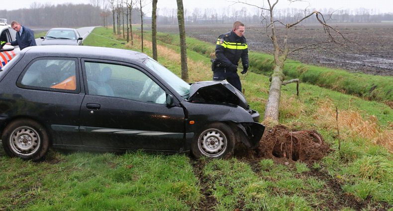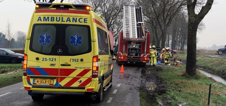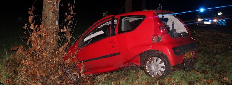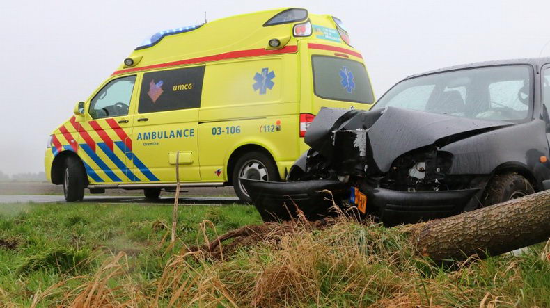 | Ossenzijl: auto tegen boom; bestuurster gewond |