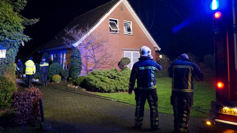 | Om vijf uur in de nacht van Oud op Nieuw werd groot alarm geslagen, omdat in een woning aan de Hyazinthenring in Veldhausen brand woedde. In dit geval werden brandweereenheden uit Neuenhaus, Veldhausen, Lage en Georgsdorf opgeroepen, alsmede de hoogwerker uit Nordhorn. Het vuur was in de garage, waar op dat moment een tienerparty werd gehouden, ontstaan ten gevolge van problemen met een gaskachel. De vlammen sloegen van de garage over op het dak van de woning en richtten zeer grote schade aan. Twee bewoners, die al lagen te slapen, konden tijdig gewekt worden en uit de woning komen. Een 15-jarige jongen werd wegens rookvergiftigingsverschijnselen naar het ziekenhuis in Nordhorn overgebracht. |