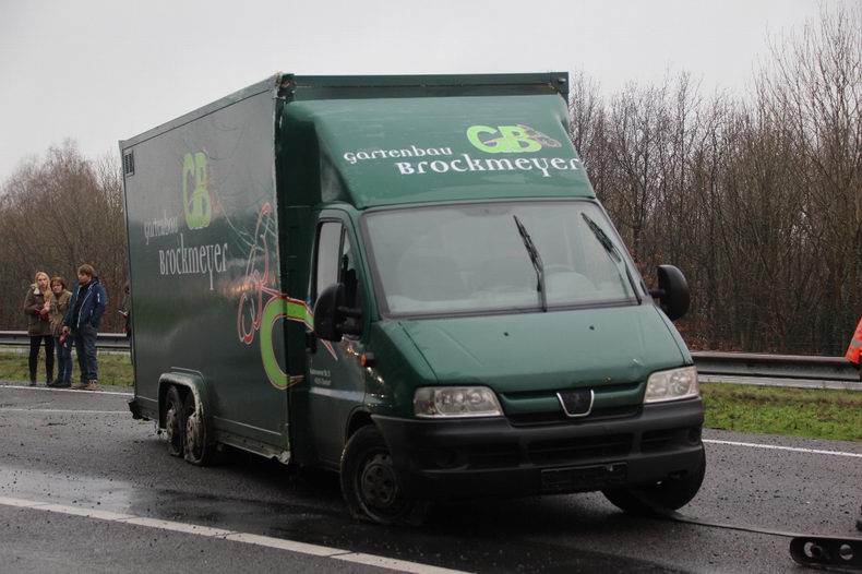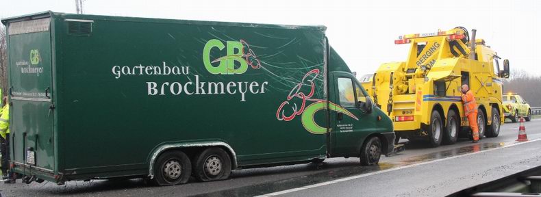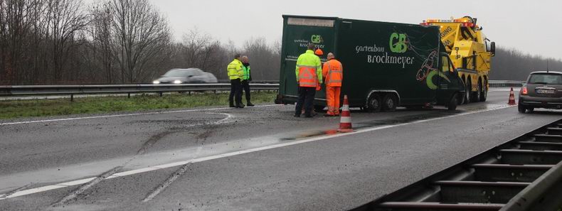 | Zondagmiddag is een kleine vrachtwagen van een tuinbedrijf uit Glandorf (D) op de A1 dwars over de rijbaan van Deventer richting Hengelo (nabij knooppunt Azelo) komen te liggen. De wagen was door nog onopgehelderde oorzaak gaan slingeren en gekanteld. Het asfalt raakte hierdoor flink beschadigd. Berger Wolves zette de truck overeind en voerde 'm af. Voor zover bekend raakte niemand ernstig gewond. |