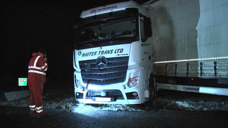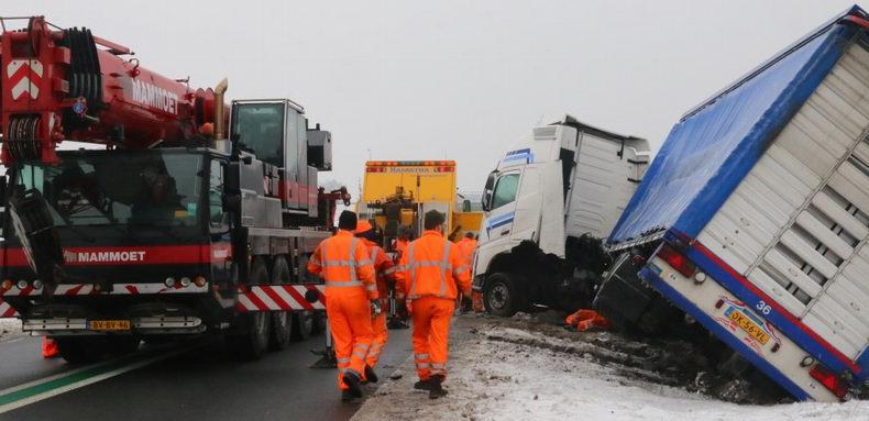| A37: vrachtwagencombinaties in problemen; opnieuw veel ongevallen door gladheid |