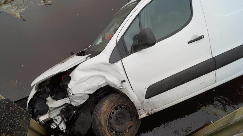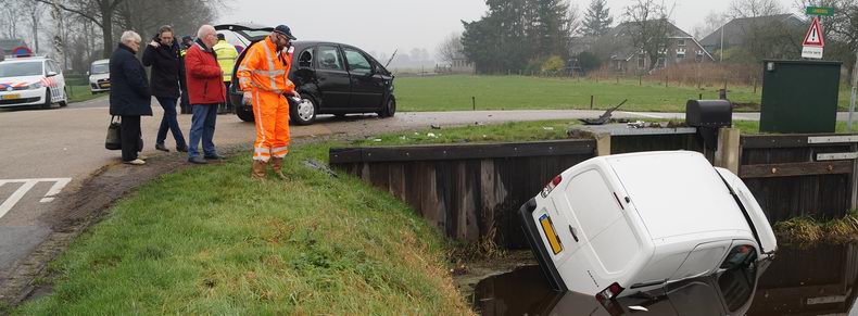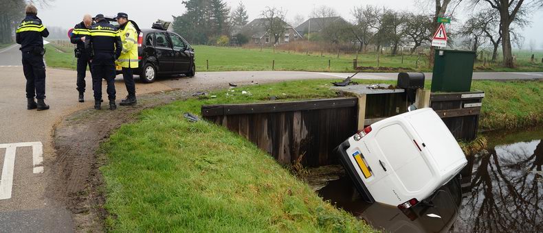 | Dalfsen: bestelauto te water na aanrijding, bestuurder gewond |